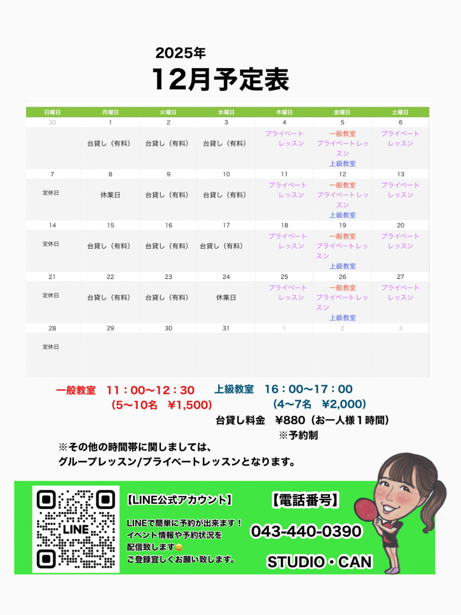 ご予約は、CAN卓球教室専用公式アカウントからイベント情報も配信中!!